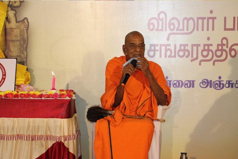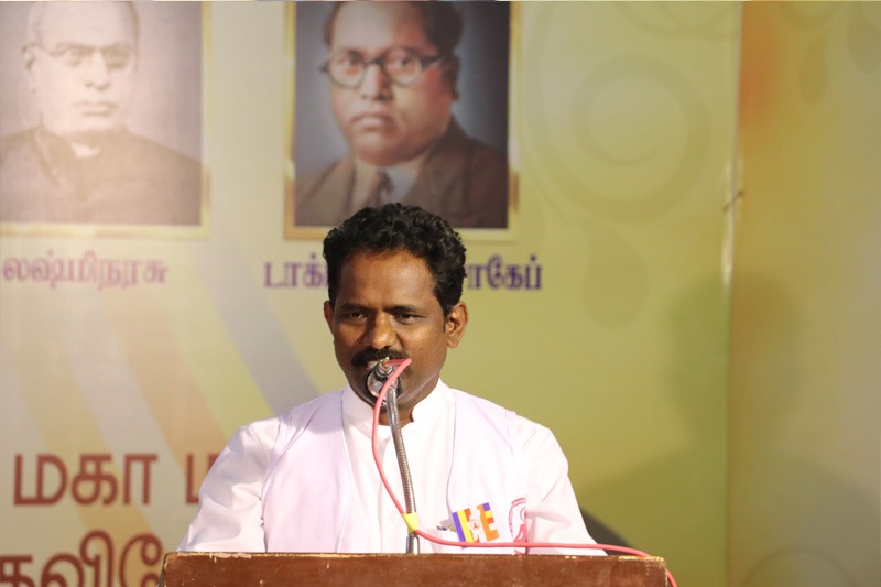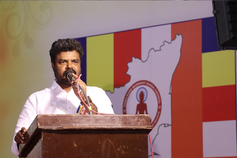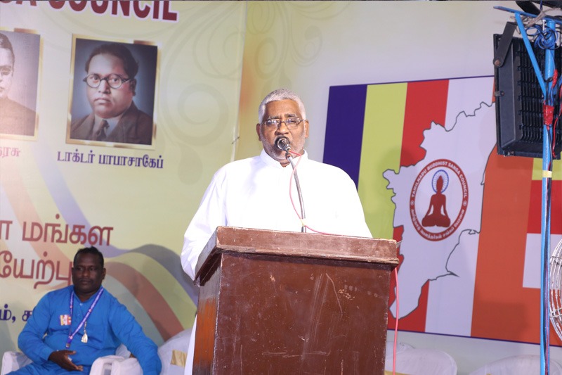 பௌத்தம் எப்படி தோன்றியது, எப்படி வளர்ந்தது, எவ்வாறு அது வீழ்த்தப்பட்டது என்பதற்கான வரலாற்று காரணங்களை விளக்கியதுடன், 800 ஆண்டுகளுக்கு பிறகு பௌத்தத்தை மீட்டெடுப்பதற்கான தேவை ஏன் வந்தது என்பதை பற்றி விரிவாக விளக்கினார். பண்டிதர், அம்பேத்கர் ஆகியோரின் பங்களிப்பையும் அவர்களுக்கு முன்பு பௌத்தத்தை முன்னெடுத்த அசோகர் தொடங்கி தர்மபாலர் வரையிலான அனைத்து முன்னோடிகளையும் நினைவு கூர்ந்தார். காஞ்சி பவுத்தம் வளமாக வாழ்ந்த மண் அந்த மண்ணில் மீண்டும் பௌத்த மதத்தை வளர்ப்பதற்கான முயற்சியில் நாம் இறங்கி இருக்கின்றோம். சங்கரத்தினர்களாக பொறுப்பெடுத்தவர்கள் முனைப்போடும் ஆற்றலோடும் உறுதியோடும் பணியாற்ற வேண்டும். நமது முன்னோடிகளின் கனவை நீங்கள் நனவாக்குவதின் மூலமாக ஒரு வரலாற்றுக் கடமையை நீங்கள் மேற்கொண்டு இருக்கிறீர்கள் என்று கூறினார்.