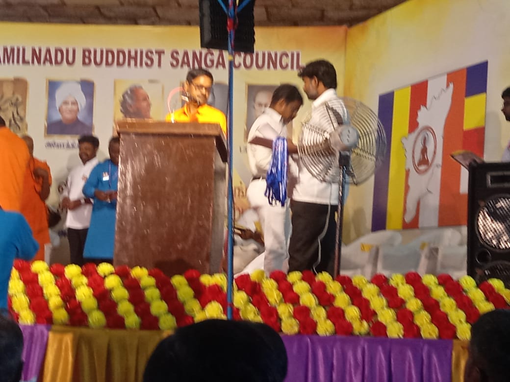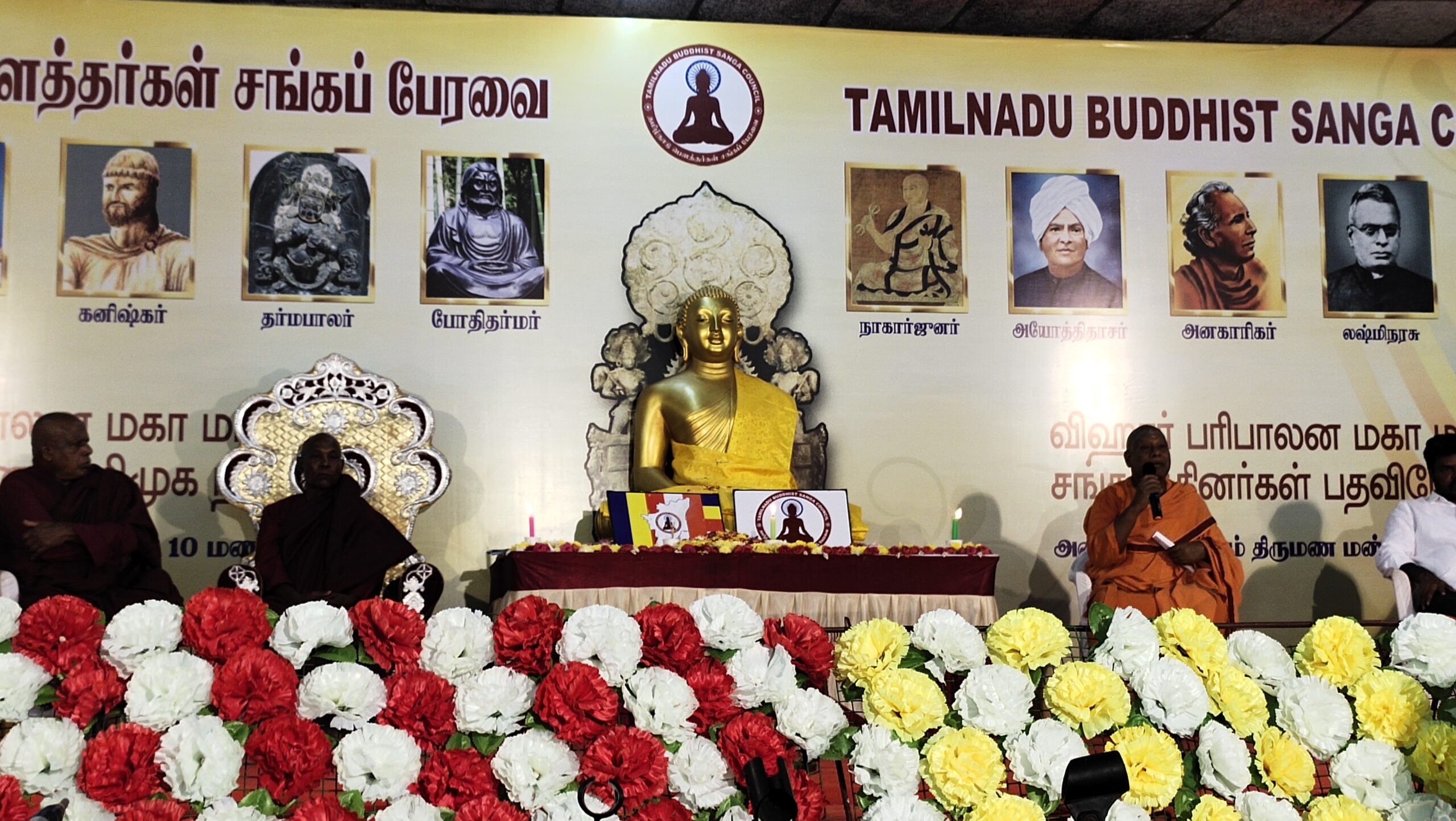 பௌத்தம் எப்படி தோன்றியது, எப்படி வளர்ந்தது, எவ்வாறு அது வீழ்த்தப்பட்டது என்பதற்கான வரலாற்று காரணங்களை விளக்கியதுடன், 800 ஆண்டுகளுக்கு பிறகு பௌத்தத்தை மீட்டெடுப்பதற்கான தேவை ஏன் வந்தது என்பதை பற்றி விரிவாக விளக்கினார். பண்டிதர், அம்பேத்கர் ஆகியோரின் பங்களிப்பையும் அவர்களுக்கு முன்பு பௌத்தத்தை முன்னெடுத்த அசோகர் தொடங்கி தர்மபாலர் வரையிலான அனைத்து முன்னோடிகளையும் நினைவு கூர்ந்தார். காஞ்சி பவுத்தம் வளமாக வாழ்ந்த மண் அந்த மண்ணில் மீண்டும் பௌத்த மதத்தை வளர்ப்பதற்கான முயற்சியில் நாம் இறங்கி இருக்கின்றோம். சங்கரத்தினர்களாக பொறுப்பெடுத்தவர்கள் முனைப்போடும் ஆற்றலோடும் உறுதியோடும் பணியாற்ற வேண்டும். நமது முன்னோடிகளின் கனவை நீங்கள் நனவாக்குவதின் மூலமாக ஒரு வரலாற்றுக் கடமையை நீங்கள் மேற்கொண்டு இருக்கிறீர்கள் என்று கூறினார்.